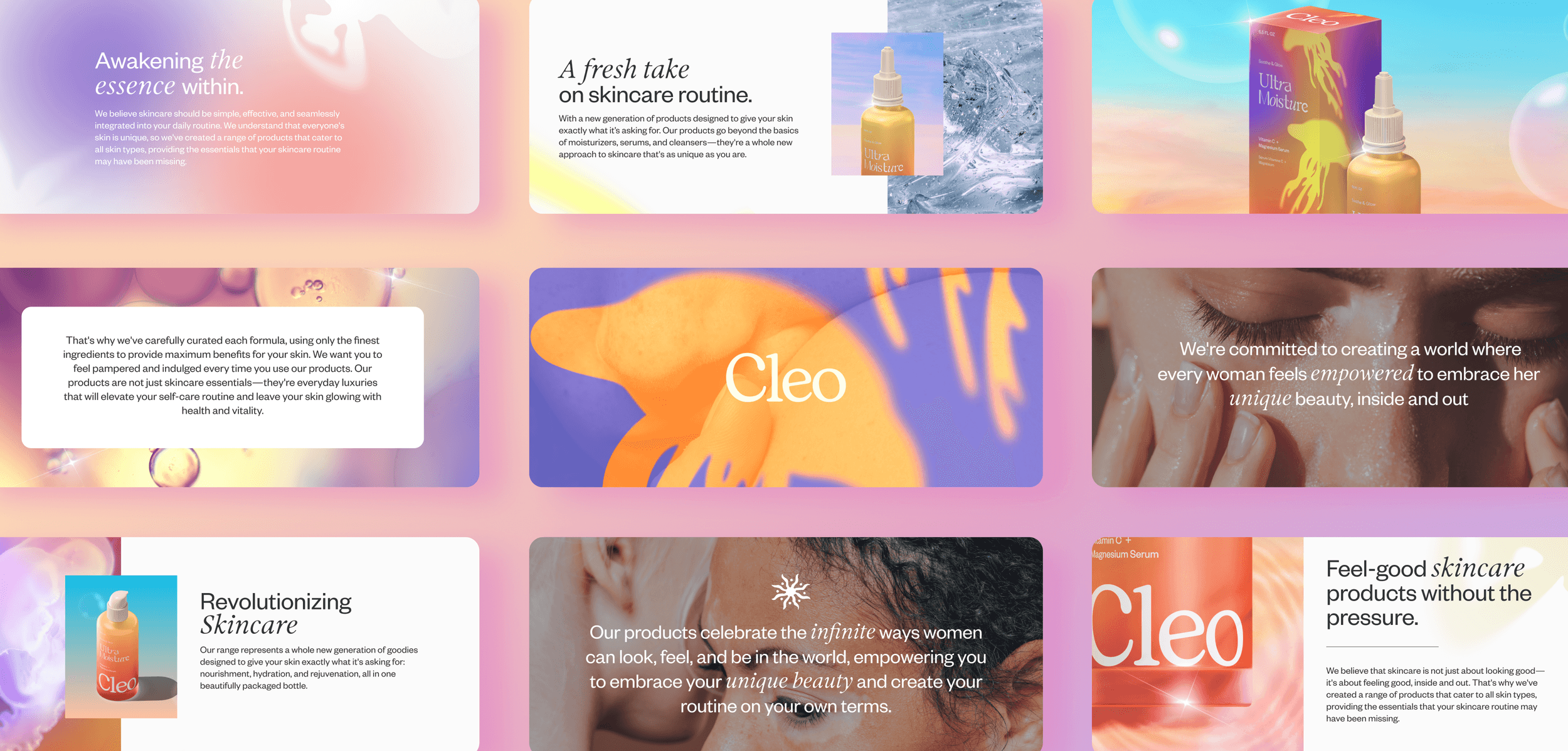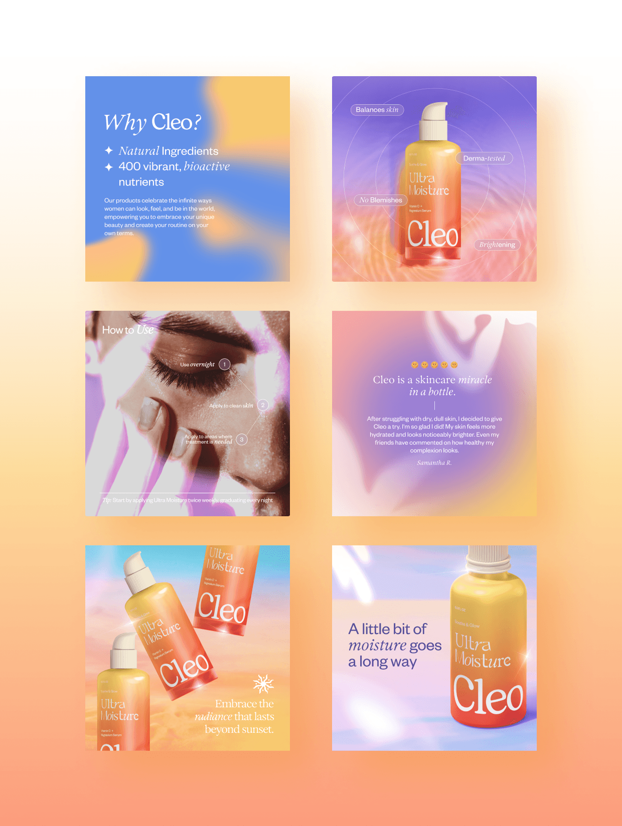 Our goal is to craft a captivating brand identity, creative direction, packaging design, and social ads that embody the values and personality of Cleo Skincare.